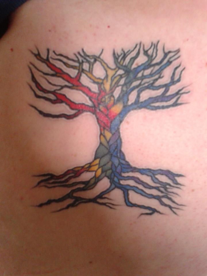 This tattoo really spoke to me for several reasons. I love the image itself. It is vibrant, colorful, and beautifully done. More than that, however, I love the message. It’s all about embracing other people and helping one another through the journey of life. We are interconnected and are stronger for it. At least that’s how I interpreted it.